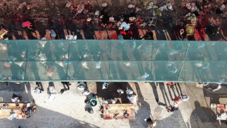 Elazığ'da Kurban Bayramı'nın ilk gününde bayram namazını kılan vatandaşlar, daha sonra aldıkları kurbanlıkları kesti. O yoğunluk dron ile havadan görüntülendi.