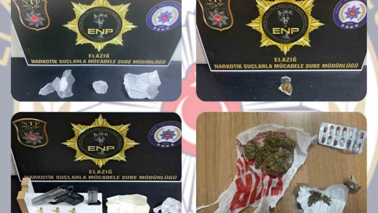 Elazığ Cumhuriyet Başsavcılığı koordinesinde İl Emniyet Müdürlüğü Narkotik Suçlarla Mücadele Şube Müdürlüğü tarafından, uyuşturucu ile mücadele kapsamında, 21-24 Mayıs 2024 tarihleri arasında uyuşturucu madde kullanan şahıslara ve sokak satıcılarına yönelik çalışma gerçekleştirildi. Yapılan çalışmalarda 12 şüpheli şahıs yakalanırken, 10 parça halinde 87,99 gram metamfetamin, 4 parça halinde 13,76 gram esrar, 9 adet sentetik ecza hap, 1 adet ruhsatsız tabanca ve tabancaya ait 3 adet fişek, uyuşturucu ticaretinden elde edildiği değerlendirilen bir miktar para ele geçirildi. Emniyet Müdürlüğünde tamamlanan işlemlerinin ardından 5 şüpheli şahsa uyuşturucu kullanmak suçundan adli işlem yapıldı. 7 şüpheli şahıs ise uyuşturucu madde ticareti yapmak suçundan adliyeye sevk edildi. 2 şüpheli şahsa adli kontrol kararı verilirken, 5 şüpheli şahıs tutuklanarak cezaevine gönderildi.