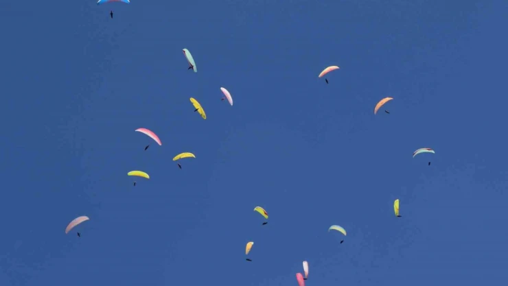 Şehir merkezine 10 kilometre uzaklıktaki 2 bin 200 rakımlı Çakırman Tepesi’nden yamaç paraşütüyle atlayan sporcular, Orkut Baysal Yamaç Paraşütü XC Open Gençler/Büyükler Türkiye Şampiyonası’nda derece yapmak için birbirleriyle yarışırken gökyüzünde adeta bir şölen oluşturdular.