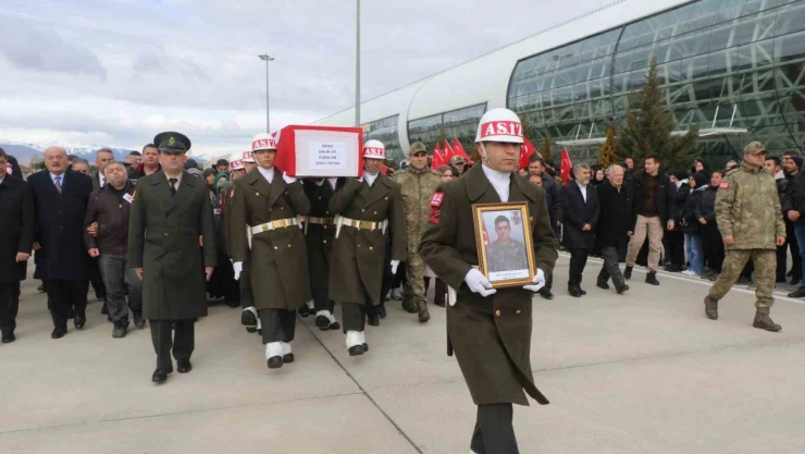 Kuzey Irak’ta Pençe Kilit Harekatı bölgesinde PKK’lı teröristlerle çıkan çatışmada şehit olan Erzincanlı Piyade Sözleşmeli Er Salih Ay’ın cenazesi, Yıldırım Akbulut Havalimanında düzenlenen törenle karşılandı.