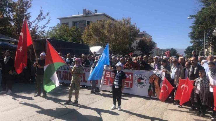 Erzincan Filistinle Dayanışma Platformu tarafından düzenlenen etkinlikte yüzlerce Erzincanlı, İsrail'in saldırısı altında bulunan Filistin'e destek vermek için yürüdü.