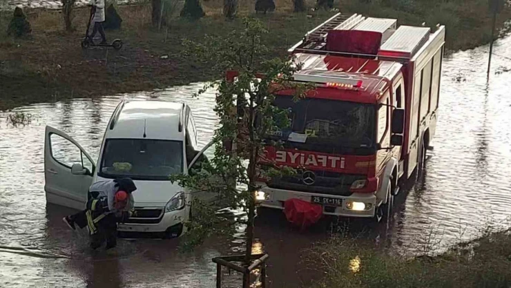 Erzurum'da akşam saatlerinde etkili olan sağanakta bodrum katları ve giriş kattaki iş yerlerini su bastı. Aracı içerisinde mahsur kalan sürücü ise itfaiye ekiplerince kurtarıldı.