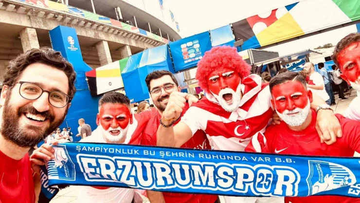 Almanya’da devam eden 2024 Avrupa Futbol Şampiyonası’nı (EURO 2024) izleyen Erzurumlu akademisyenler Doç. Dr. Ahmet Emre Cinislioğlu, Doç. Dr. Oğuz Demirdögen ve Doç. Dr. Agah Kahramanlar, milli takımın çeyrek final müsabakasını izledikten sonra stadyumda Erzurumspor bayrağı açarak memlekete selam gönderdi.