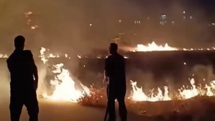 Adıyaman'da, evlere yakın çıkan anız yangını korku ve paniğe neden oldu.