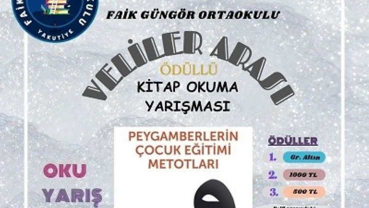 Erzurum Yakutiye İlçe Milli Eğitim Müdürlüğüne bağlı Faik Güngör Ortaokulu, öğrencilerin velileriyle beraber katılacağı ödüllü kitap okuma yarışması düzenleyecek.