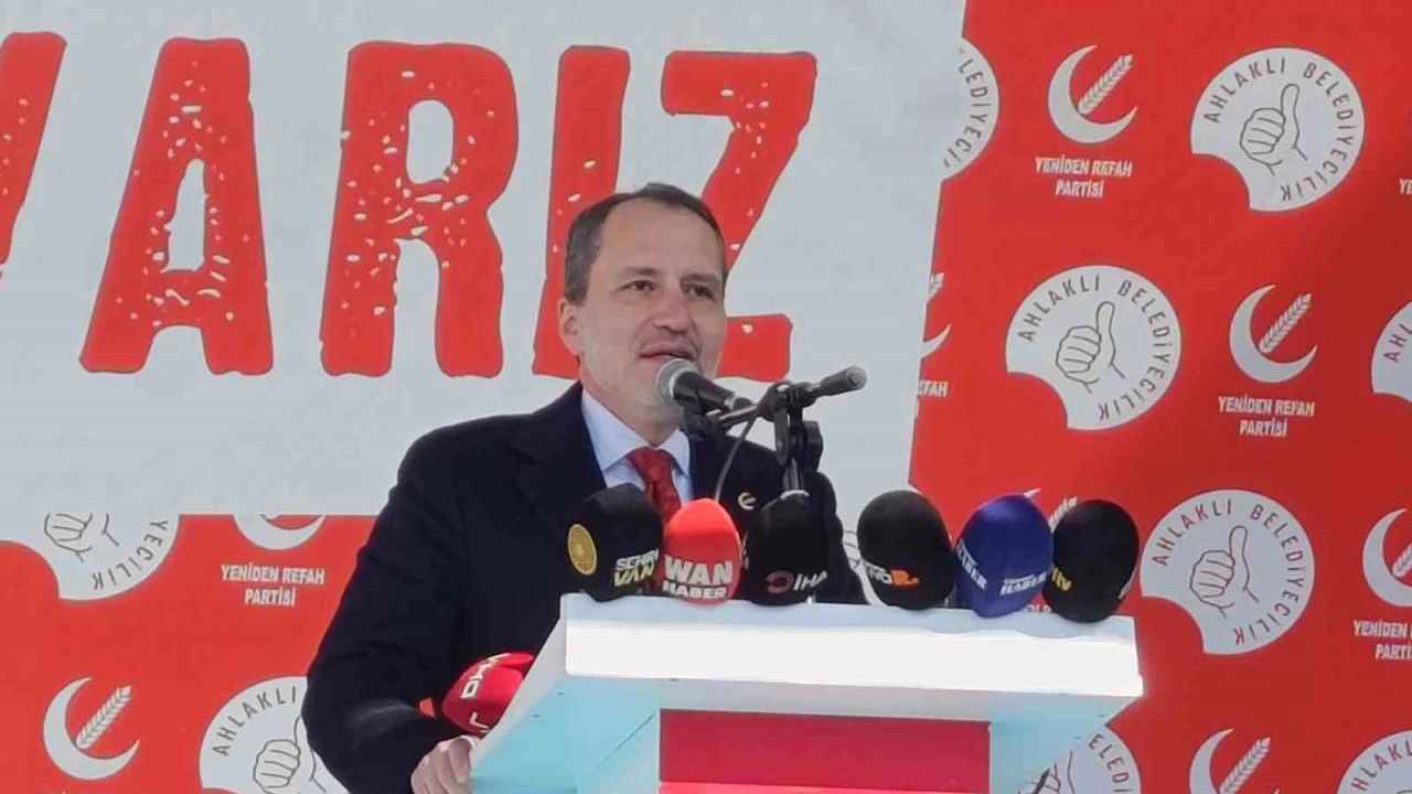 Yeniden Refah Partisi Genel Başkanı Fatih Erbakan, partisinin düzenlediği mitinge katılmak üzere Van’a geldi. Kentin Beşyol Meydanı’nda düzenlenen mitingde konuşan Erbakan, merhum liderleri Necmettin Erbakan’ın Doğu ve Güneydoğu Anadolu bölgesinin insanına ayrı bir şefkat ve merhamet gösterdiğini hatırlattı. Yine merhum Erbakan’ın "Türk’ü Kürt’ten, Kürt’ü Türk’ten ayırırsan ortada ne Türk kalır, ne de Kürt kalır. Ama Türk ve Kürt bir olursa karşısında ne Amerika, ne İsrail durabilir" sözünü dile getiren Erbakan, "Mücahitler yuvası, imanlı, inançlı insanların diyarı Van’ımızda merhum liderimiz Erbakan hocamızı bir kez daha rahmetle anıyoruz. Onun bu sözleri sadece sözde kalmadı. Yapmış olduğu fabrikalar, hizmetler sadece Van’da değil, Cizre’de azot sanayi, Diyarbakır’da Türkiye Elektromekanik Sanayi (TEMSAN), Ergani’de çimento fabrikası, Muş’ta şeker fabrikası, bu bölgede üretime yönelik işsizliğin önlenmesine yönelik bir çivi çakılmışsa bunun altında Erbakan Hocamızın milli görüşün imzası var. Allah gani gani rahmet eylesin. 200’den fazla sanayi tesisinin temeli atıldı. 70’ten fazlası bütün engellemelere rağmen hizmete sokuldu. İşte bu ruh milli görüş ruhudur. Diyarbakır’ında 10 bin insanın çalışacağı TEMSAN Fabrikası’nı kurdu. Bugüne kadar o hamleler darbelerle, engellemelerle akamete uğratılmasaydı bugün Van’ın da Diyarbakır’ın da Bingöl’ün, Bitlis’in, Muş’un da Hakkari’nin de ne halde olacağını gelin siz düşünün" diye konuştu.