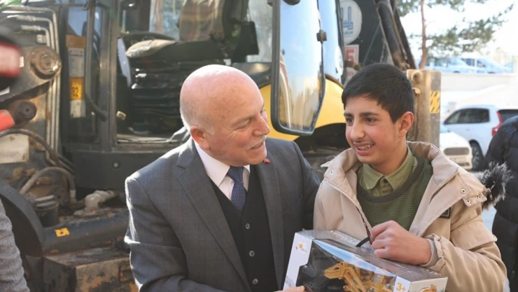 Büyükşehir Belediyesi binası önünde bulunan iş makinesine binen ve kendisine hediye edilen oyuncakla mutluluğunu ifade eden Furkan Susam’a Başkan Sekmen’de eşlik etti. Erzurum Büyükşehir Belediye Başkanı Mehmet Sekmen, yaşama sevinciyle hayata tutunan bütün engelli vatandaşların sadece bir gün değil her gün yanlarında olduklarını belirterek, “Erzurum Büyükşehir Belediyemizin Engelli Koordinasyon Merkezi’nde eğitim gören 13 yaşındaki Furkan Susam evladımız özel bir yavrumuz. Yavrumuzun bir iş makinasını kullanma hayali vardı. Bugün Furkanımızın bu hayalini gerçekleştirdik. Bizler birlikte olduğumuzda aşmayacağımız hiçbir engel yok, yeter ki kalplerimizde engel olmasın.” dedi.