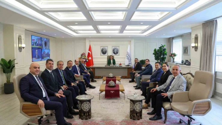 Güneydoğu Anadolu Tekstil ve Hammaddeleri İhracatçıları Birliği ile Güneydoğu Anadolu Kuru Meyve ve Mamulleri İhracatçıları Birliği Başkan ve yönetim kurulu üyeleri, Büyükşehir Belediye Başkanı Fatma Şahin'i ziyaret ederek, yeni dönemde başarılar diledi.