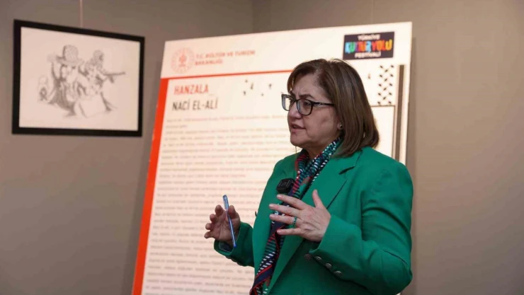 Gaziantep’te festival kapsamında görücüye çıkan sergilere dikkati çeken Başkan Fatma Şahin, Filistin direnişinin sembolü olan Hanzala karakteri konusunda verdiği mesaja değindi. Şahin, “Bizimle örtüşen çok şey var. Gastronomi ile örtüşen çok yanı var. Biz zerdali çekirdeği ile ölüme meydan okuduk. Ay Yıldızlığı bayrağımızı koruduk. Hanzala karakteri ile Naci El-Ali, kaşık ile çatalla açlıkla mücadele ettiğini, yoksulluğu, zulmü anlatıyor” ifadelerini kullandı.