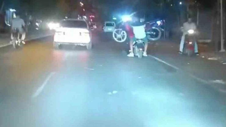 Trafikteki bir vatandaş, tehlikeli olayı fark edip cep telefonunu çıkararak bu anları kaydetti. Görüntülerde, elektrikli motosiklete 3 kişinin sığmaya çalıştığı ve arkada oturan kişinin kırmızı renkli motosikleti dengelemekte zorlandığı net bir şekilde görüldü. Özellikle motosikletin arkasındaki kişinin motosikleti tutmak için büyük bir çaba sarf ettiği ve dengesini kaybetmemek için çabaladığı anlar, yürekleri ağza getirdi.