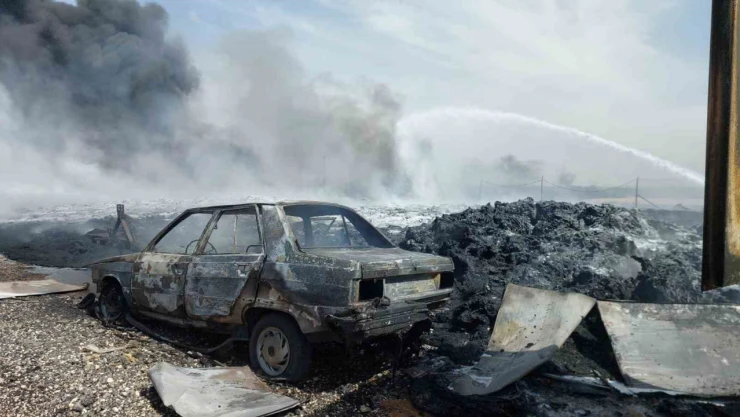 Gaziantep'in Nizip ilçesinde plastik su borularının satıldığı iş yerinde çıkan yangın kontrol altına alınırken iş yeri ve araçlar kullanılamaz hale geldi.