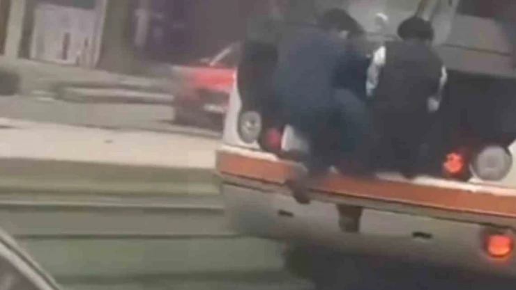 Gaziantep’te tramvayın arkasında tehlikeli şekilde yolculuyk eden çocuklar, hem kendilerinin hem de diğer yolcuların canını tehlikeye attı. O anlar, tramvayın yanından geçen bir vatandaş tarafından cep telefonu kamerasıyla kaydedildi. Görüntülerde, çocukların tramvayın arkasında sallandığı anlar dikkat çekti.