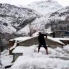 Girlevik Şelalesi beyaza büründü, köyde yaşayan vatandaşlar bacalarını küredi
