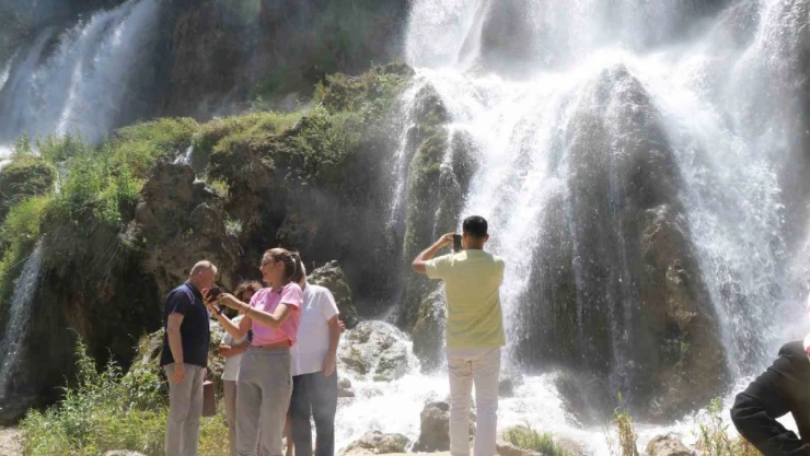 Sıcak havanın etkili olduğu Erzincan’da, Girlevik Şelalesi’nde hafta sonu yoğunluğu yaşandı. Şelale, yerli ve yabancı ziyaretçilerin akınına uğradı.