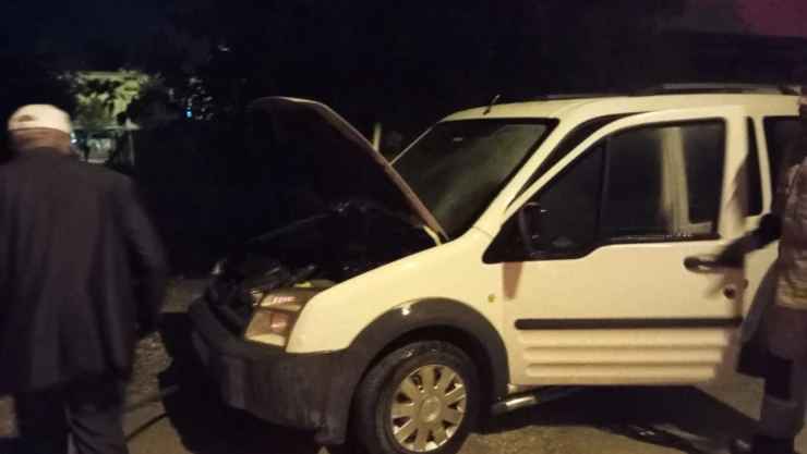 Adıyaman'ın Gölbaşı ilçesinde park halinde bulunan hafif ticari aracın motor kısmı yandı.
