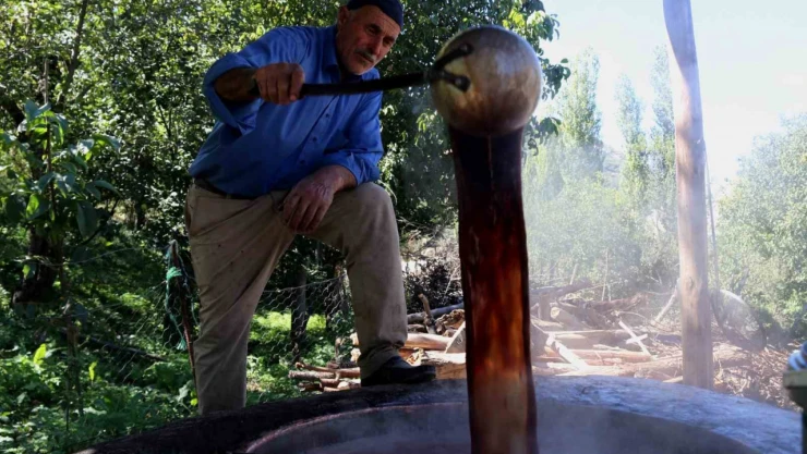 Bitlis'in Hizan ilçesinde asırlardır geleneksel yöntemlerle yapılan üzüm pekmezi yoğun ilgi görüyor.