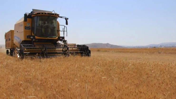 Erzincan'da hububat tarlalarında biçerdöver ile hasat işlemleri sürüyor.