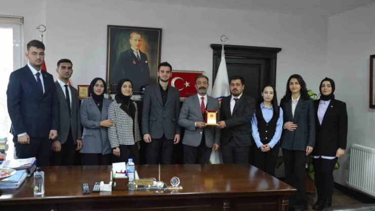 Atatürk Üniversitesi Hukuk Fakültesi İdeal Hukuk Kulübü öğrencileri de Başkan Göğebakan’ın meslek deneyimleri noktasında faydalanmak istediklerini belirterek ziyaret anısına bir plaket verdiler.