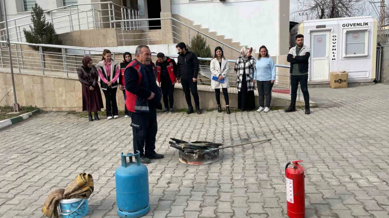 Iğdır Belediyesi İtfaiye Müdürlüğü ekipleri tarafından şehirdeki kurum çalışanlarına yönelik yangın söndürme eğitimleri devam ediyor.