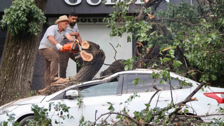 Iğdır'da faciadan dönüldü: Asırlık ağaç aracın üzerine devrildi