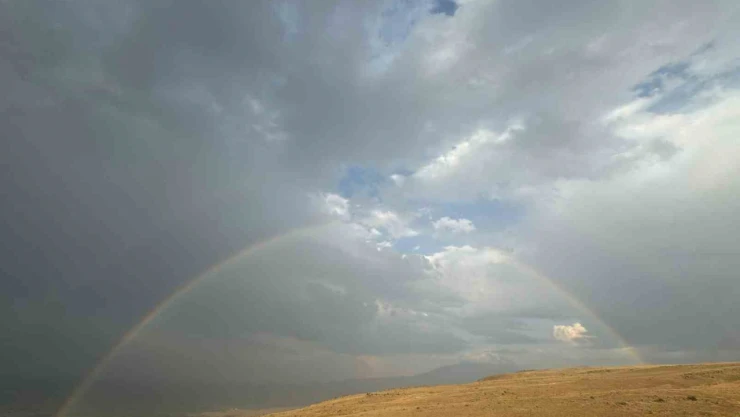 Iğdır’da etkili olan sağanak yağış, doğanın muhteşem bir sanat eseri olan gökkuşağının oluşmasını sağlarken o anlar kayıt altına alındı.