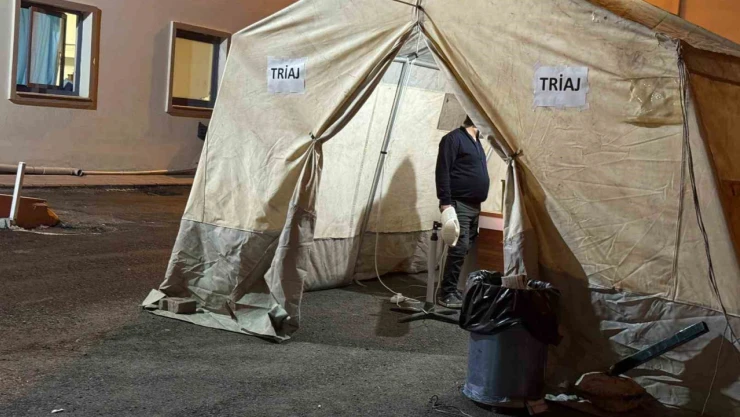 Iğdır Dr. Nevruz Erez Devlet Hastanesinde görevli bir doktorun testlerinde kızamık görülmesi üzerine hastane bahçesine mücadele ve kontrol için triaj üniteleri kuruldu.