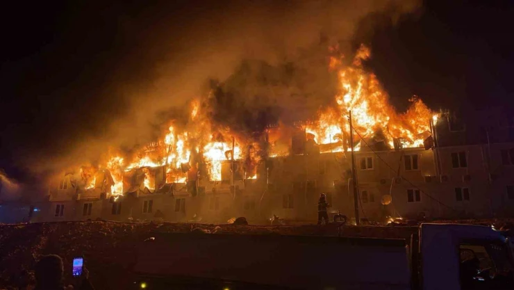 Adıyaman’da kalıcı konutların yapıldığı bölgede işçilerin kaldığı konteyner yatakhanede yangın çıktı. Alevlere teslim olan konteyner yatakhanede söndürme çalışmaları devam ediyor.
