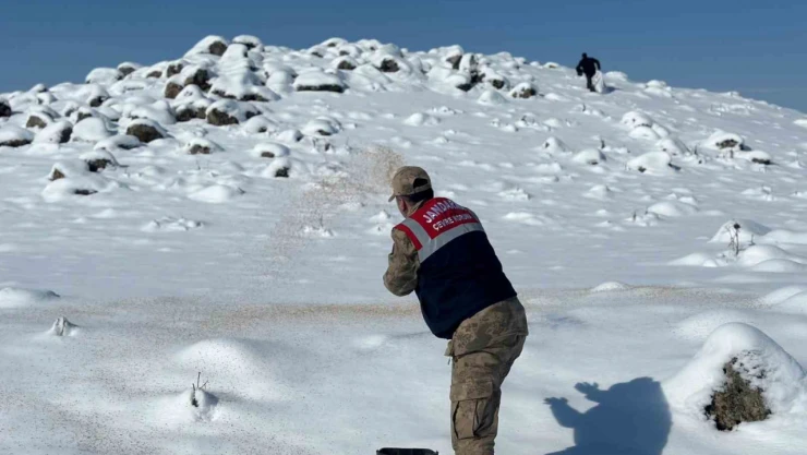 Bitlis İl Jandarma Komutanlığı personeli yaban hayvanlar için doğaya yem bıraktı.