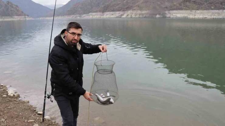 Olta ile balık tutan Fırat Aydın, “Hafta sonları baraja gelerek böyle bir etkinlik yapıyoruz bizim için sosyal bir faaliyet oluyor bugün şanslı günümdeyim dört adet alabalık tuttum, nasip olursa poşetimizi doldurup gideceğiz” dedi.