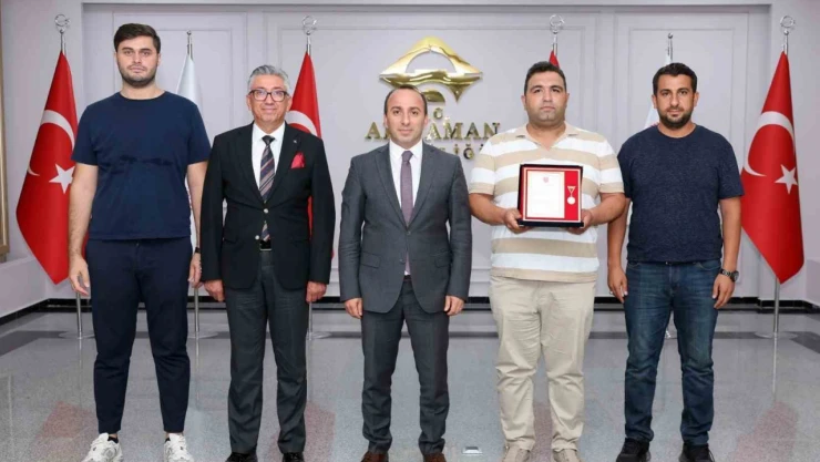 Adıyaman Vali Vekili Ali Erdoğan, TSK Güçlendirme Vakfı Mersin Bölge Temsilcisi Albay Yolaç Erdur ile birlik Türk Silahlı Kuvvetlerini Güçlendirme Vakfı’na yaptığı maddi ve manevi katkılarından dolayı hayırsever Metin Karakuş adına düzenlenen altın madalya ve beraatını verdi.