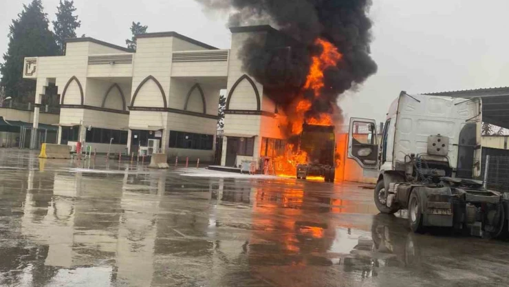 Karkamış Sınır Kapısı’nda bekleyen tır, akü değişimi sırasında kıvılcımların yakıt deposuna sıçraması sonucu alev topuna döndü. Yangın sırasında alevler sınır kapısına da sıçradı.