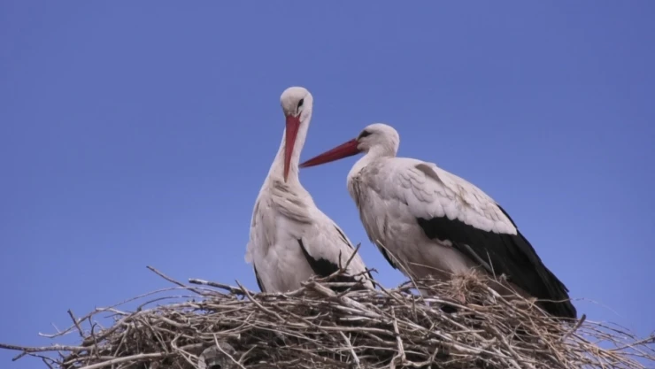 Baharın müjdecisi olarak bilinen leylekler Kars'a geldi. Uzun bir kış mevsiminin ardından havaların ısınmasıyla birlikte Kars'a gelen leylekler, yuvalarını kurdu.
