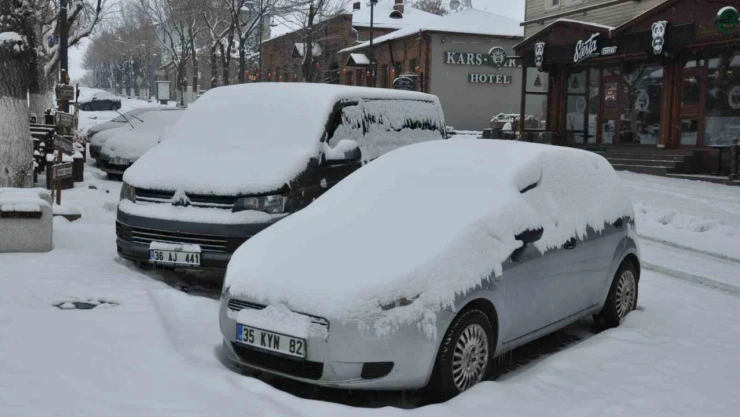 Kars kara teslim. Kar yağışı ve tipiden 69 köy yolu ulaşıma kapanırken, kentte araçlar kara gömüldü.