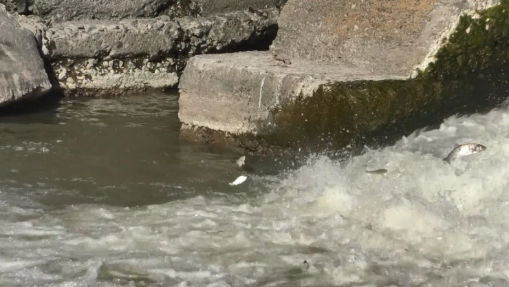 Kars’a 10 kilometre uzaklıkta bulunan ve Kars Çayı üzerinde kurulan HES Barajı önüne gelen binlerce balık, akıntıya karşı kilometrelerce yol alarak yumurtalarını bırakacak güvenli yerlere çıkma mücadelesi veriyor. Önüne çıkan engelleri atlayarak geçmeye çalışan balıklar ölüm göçü kameralara yansıdı.