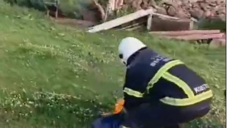 Kars’ta bir evde yemek yapmak için yakılan piknik tüpü alev aldı. Alev alan piknik tüpünü patlamak üzereyken dışarıya çıkartan itfaiye ekipleri, faciayı önledi.