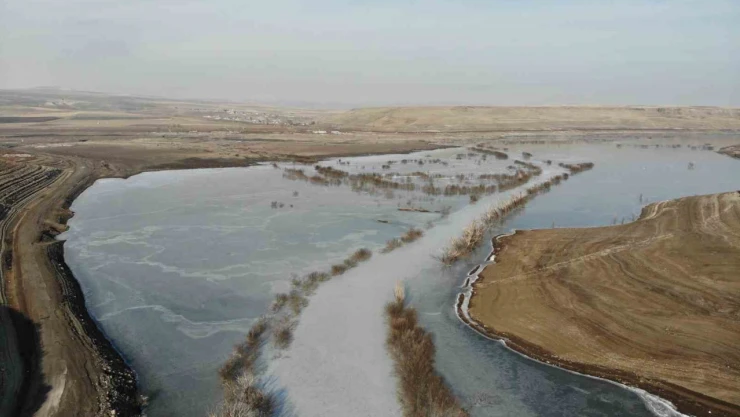 Kars'ta soğuktan baraj gölü dondu