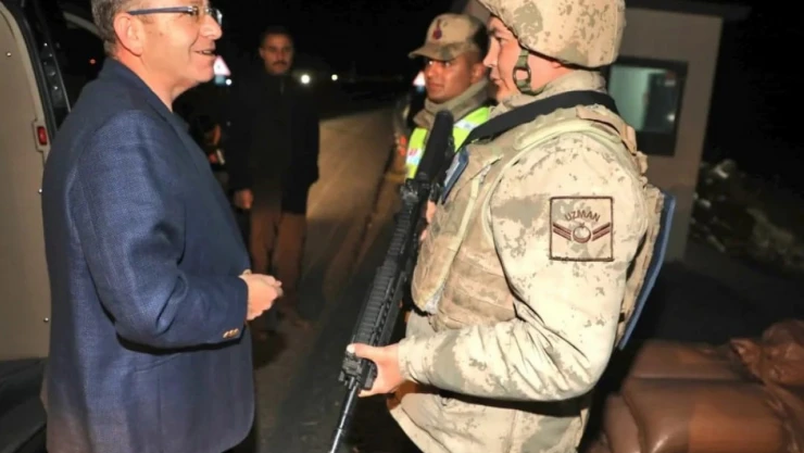 Kars Valisi Ziya Polat, yol kontrol noktasında görevli jandarma ekipleriyle bir araya geldi.