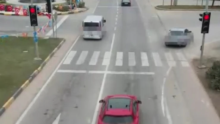 Gaziantep’te, dron destekli yapılan trafik uygulamalarında kırmızı ışık ihlali yaptığı tespit edilen 8 araç sürücüsüne toplam 58 bin 568 TL cezai işlem uygulandı. Araçların kırmızı ışık ihlal anları ise dron kamerasına yansıdı.