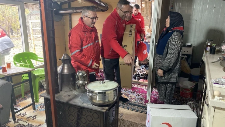 Kızılay, köylerde kalan depremzedelere kışlık yardım yaptı