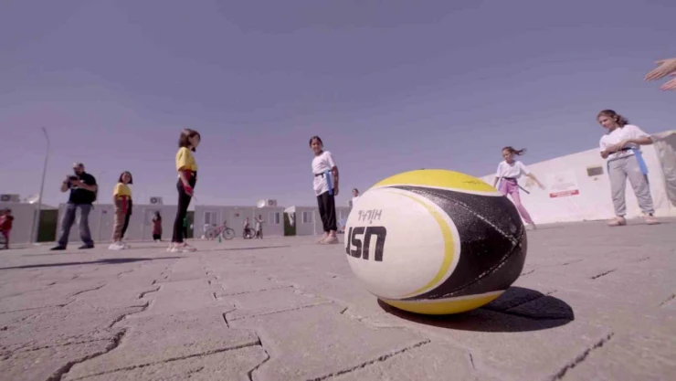 Adıyaman'da depremzede çocuklar, psikososyal gelişimlerine katkı sağlamak için hazırlanan sosyal sorumluluk projesiyle ragbi sporcusu oldu.