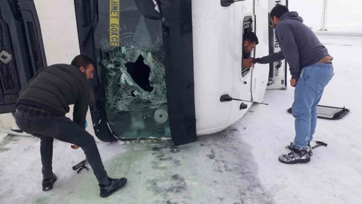 Ardahan'ın Çıldır ilçesinde kar yağışı ve tipi trafik kazaları da beraberinde getirdi. Çıldır'da devrilen tırda sürücü vatandaşların yardımıyla kurtarıldı.