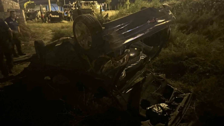 Iğdır’da yola atlayan köpeğe çarpmamak için manevra yapan sürücü, aracının direksiyon hakimiyetini kaybedince yaklaşık 50 metre uçarak yol kenarındaki kanala düştü.