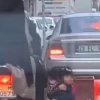 Küçük çocukların tehlikeli motosiklet yolculuğu kamerada
