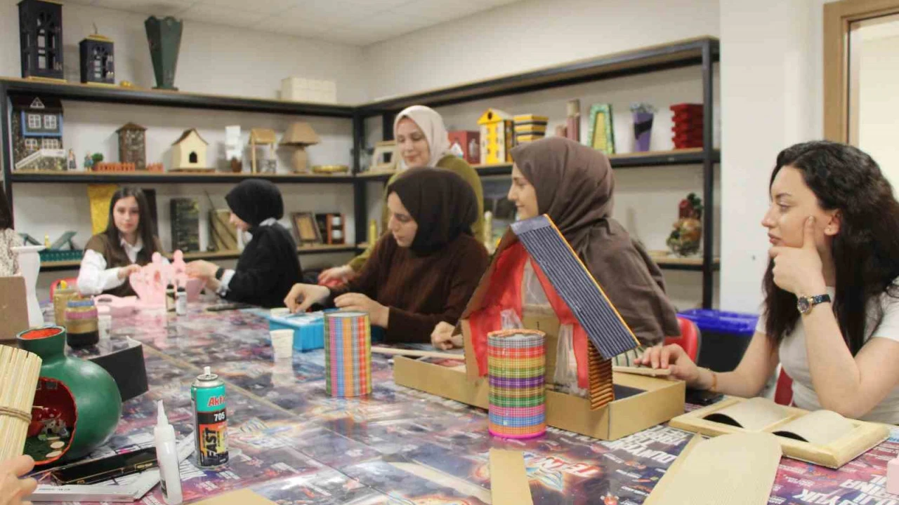 Evde kullanılmayan veya sokakta bulunan ürünler, bu kursla gençlerinde ellerinde abajur, vazo, maket ev gibi sanat eserlerine dönüştürülüyor.