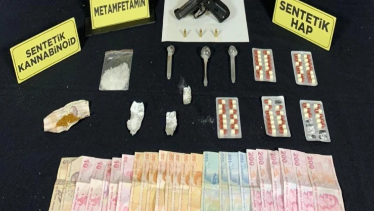 Yapılan operasyonlarda 11, 437 adet Sentetik Ecza maddesi, 5, 49 gram esrar maddesi, 60, 53 gram Metamfetamin maddesi, 81, 58 gram sentetik Kannabinoid maddesi, 6, 49 gram Skunk maddesi, 2 adet ruhsatsız tabanca, 1 adet tüfek, 1 adet kurusıkı tabanca, 57 adet fişek ile uyuşturucu madde ticaretinden elde edildiği değerlendirilen 2 bin 260 TL nakit para ele geçirildi.