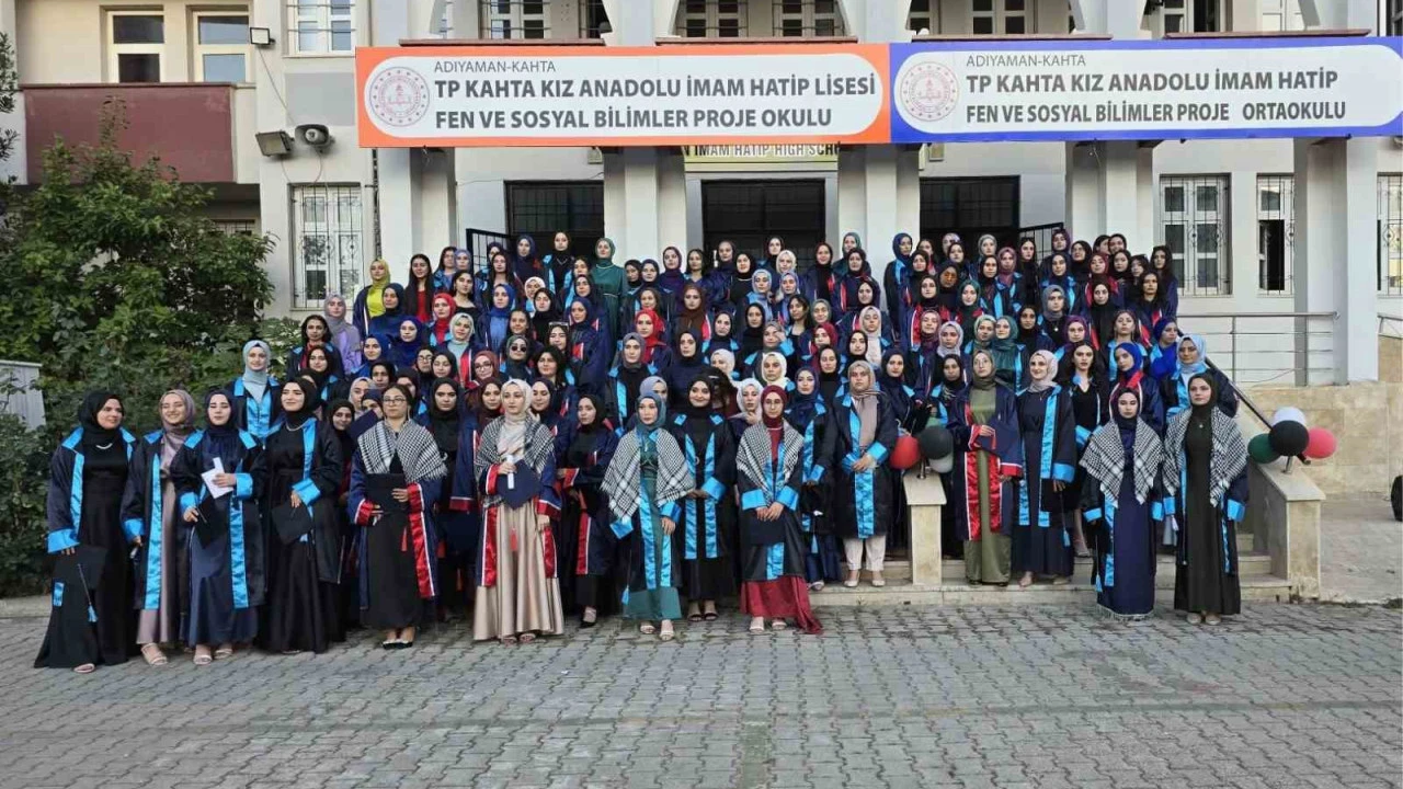 Adıyaman'ın Kahta TP Kız Anadolu İmam Hatip Lisesi'nin mezuniyet töreninde öğrenciler, Gazze ve Refah'ta yaşanan katliamlara dikkat çekerek, insanlığın sınıfta kaldığını vurguladı.