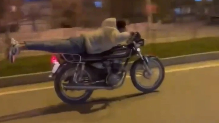 - Motosikletle akrobatik hareketler yapan kişiler, kendilerini takip eden polisleri de çekerek sosyal medyadan paylaştılar