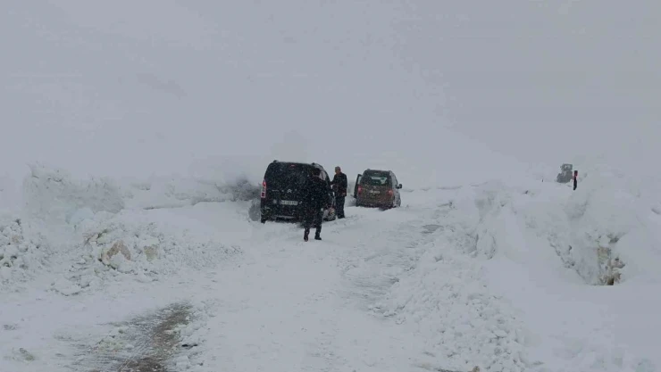 Karayolları 113. Şube Şefliği Ekip Şefi İdris Karakan, iş makinesi operatörleri Bülent Turan ve Hasan Elhan, yaklaşık 4 saatlik çalışmanın ardından yolu açarak araçları saplandıkları yerden kurtardı.