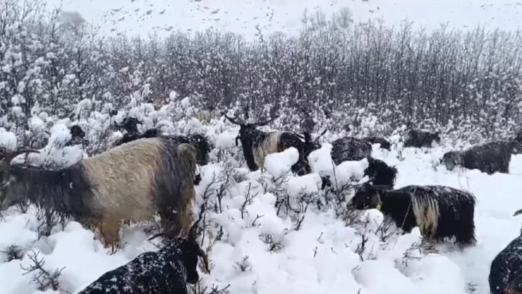 Muş’ta 2 günden buyana devam eden kar yağışı yüksek rakımlı bölgelerde etkili oluyor. Karabey köyüne bağlı Kamiş mezrasında otlatmak için kırsala çıkarılan küçükbaş hayvanlar, aniden bastıran kar ve tipi nedeniyle zor anlar yaşadı. Kar yağışı ve fırtınada zor anlar yaşayan hayvanları bir arada tutmaya çalışan çoban, sürüyü köye güçlükle ulaştırdı. Etkili olan kar yağışı ve fırtına dolayısıyla zor anlar yaşadığını söyleyen besicilerden Abuzer Güngör, “Dünden beri devam eden kar yağışı bölgeyi etkisi altına aldı. Dağda hayvanlarımı otlatırken kara yakalandım. Ben ve hayvanlarım zor anlar yaşadık. Şuanda hayvanlara eve götürmeye çalışıyorum” dedi.