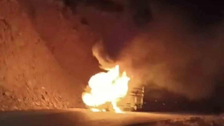 Üçevler grup köy yolunda plakası öğrenilemeyen seyir halindeki bir kamyonet aniden alev alarak yandı. Henüz kimliği öğrenilemeyen sürücü, can havliyle kendini araçtan dışarı atarak yanmaktan son anda kurtuldu.